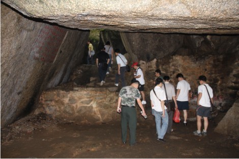 圖為公司員工在導(dǎo)游的帶領(lǐng)下參觀旅游區(qū)的各個(gè)景點(diǎn)